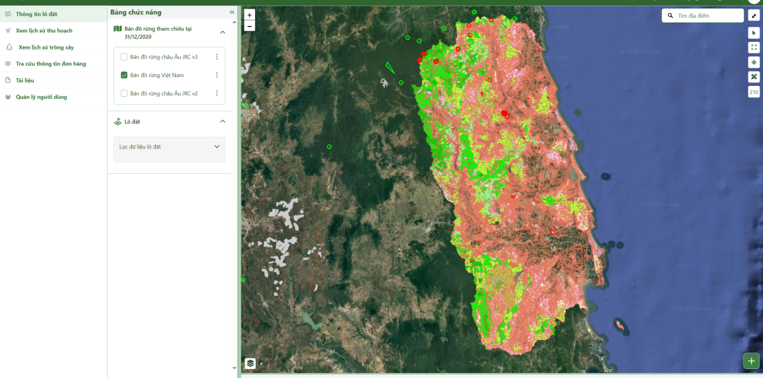- Xây dựng cơ sở dữ liệu khung trên nền tảng web làm cơ sở cho chứng nhận sản phẩm nông nghiệp không gây mất rừng.